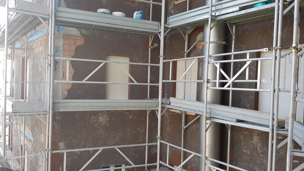 – rasatura armata con rete in corrispondenza delle pareti verticali e dei parapetti poggioli;